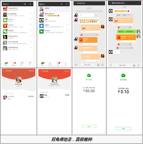 近年来,移动应用市场上出现一系列以智能生成腾讯微信软件界面截图为功能卖点的移动应用。此种应用复制微信各功能界面的美术素材并提供相应的编辑模块,使其使用者可通过编辑数据内容快速、大量生成包括微信对话记录、微信红包记录、微信支付记录等多种虚假微信截图。