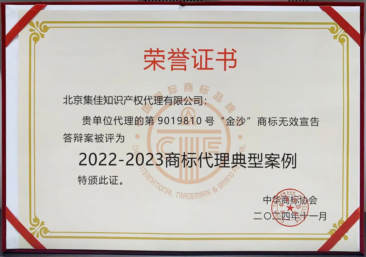 2024年11月24日下午,在商标节经典论坛之一的商标典型案例评析会议上,开云代理的“金沙”商标权无效宣告答辩案入选“2022-2023商标代理典型案例”。
